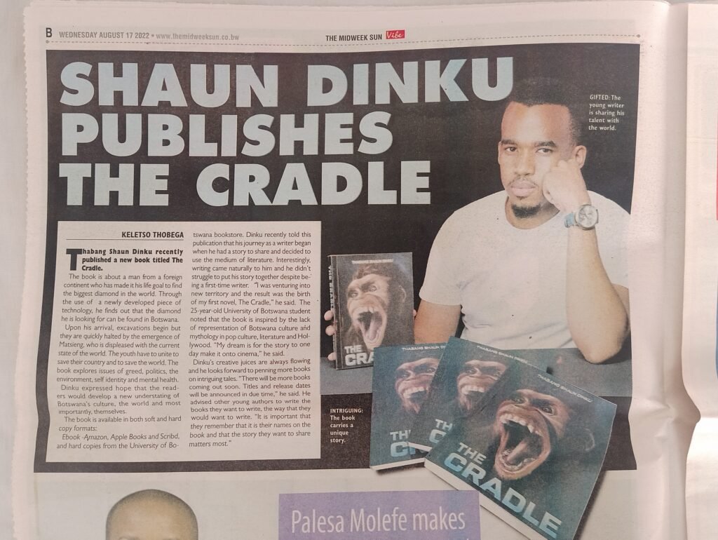 “We are not here to fight. We are here to stand up for what we believe in.” Immersing my whole being in reading The Cradle by Thabang Shaun Dinku was such agratifying escapade. Readers will certainly experience an overwhelming sense of peace and tranquillity after turning the last page. The characters are bold, fearless and utterly unpredictable. He brings in a mixture of mythology, science-fiction, politics, adverse knowledge in corporate business factions and the power of friendship in a deficient world, just to name but a few. It is nothing short of exquisite. Additionally, The Cradle brilliantly celebrates cultural diversity and unravels Botswana’s rich history regarding its connecting tothe transcendent Matsieng legend. Needless to say, the budding friendship between his famous trio; Amy, Lorato and Kabo is a much needed addition of softness and ease in a fully packed action thriller. Also, it is in this masterpiece that I fully understood the downside of the phrase, “behind every successfulman there is a woman”. Here, the author skilfully opens up a vital conversation about greed and manipulation disguised as support. Readers will definitely be pleasantly surprised by the plot twist.